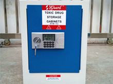 劇毒藥品柜帶電子密碼鎖+機械鎖,帶防盜報警功能,雙鎖兩人管理,開門時需兩人同時在場,符合易制毒化學品儲存管理要求。